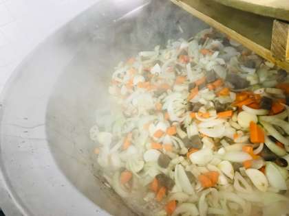 中央:味つけして、煮含めます。