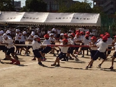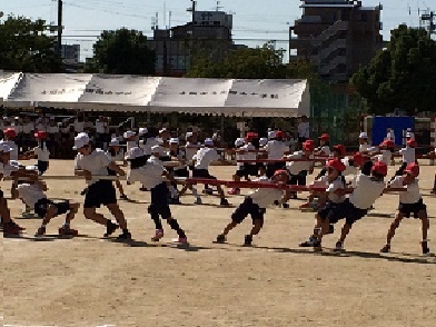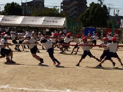 プログラム18番『棒引き」です。まずは、3・4年生が競技します。3・4年生は、グループごとの勝負で、最後の回だけ、他を応援しても良いことになっています。みんな、一生懸命がんばっていました!