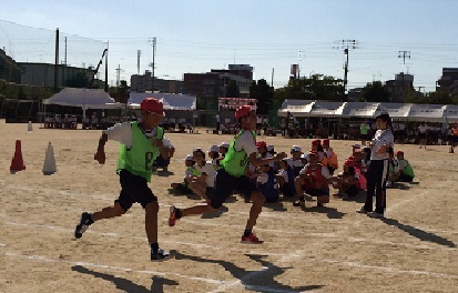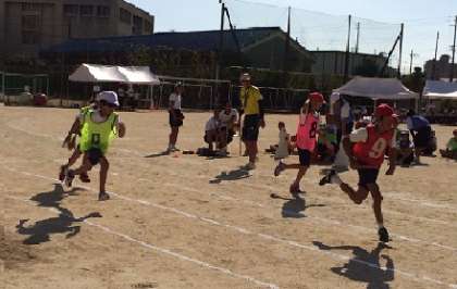 5・6年生による『対抗リレー』〜バトンをつないで!!