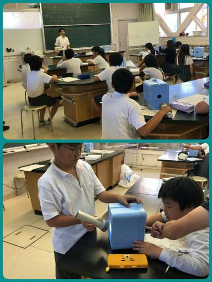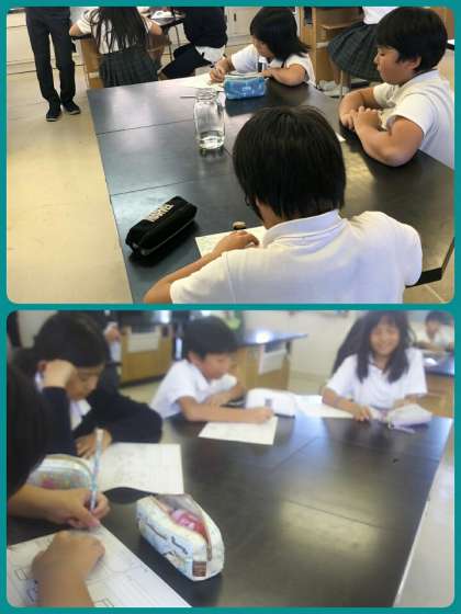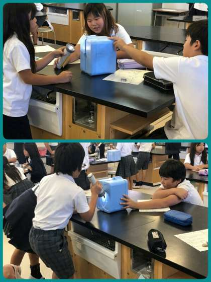 4年生は、「水のゆくえ」の学習で、水は今も水蒸気になって蒸発しているのかを、温めたり冷やしたりして確かめました。最後に、学習したことを活用して、寒い日に外に出ると息が白くなることについても考えました。