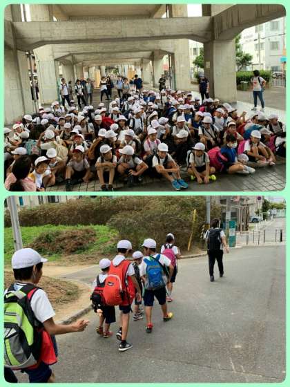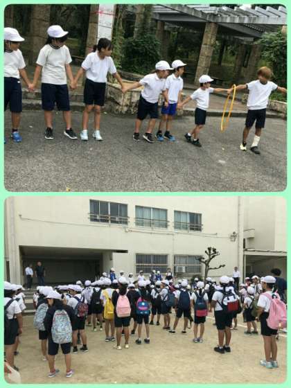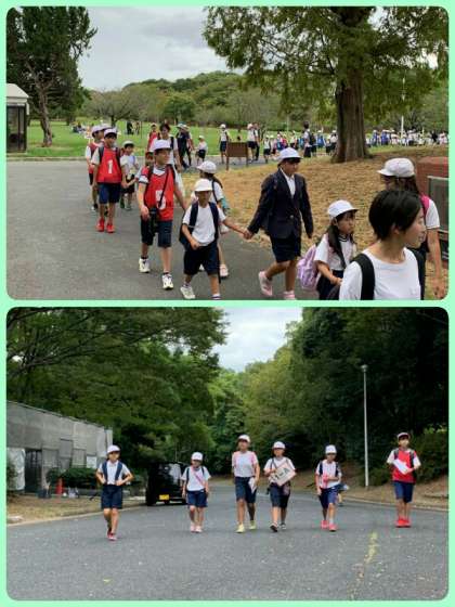 高学年が低学年の手をしっかりとつないであげて、どの班も、オリエンテーリングを無事に終えることができました。