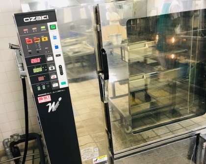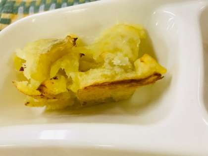 (上)「おいしくなりますように。」のきもちを込めて調理員さんが作ってくれたスイートポテト。焼き物機からよいかおりがしてきます。