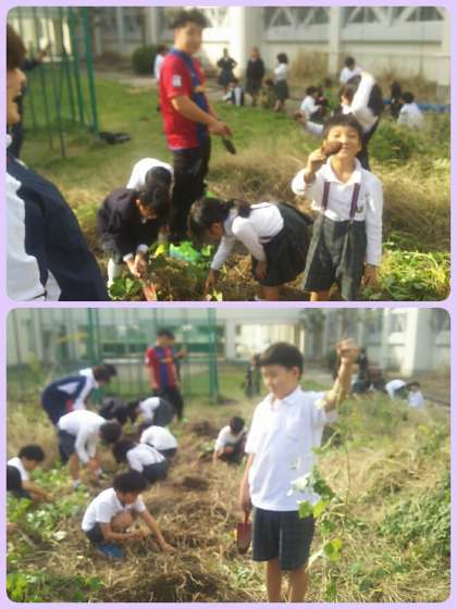 2年生は、春に植えたさつまいもの苗の収穫を行いました。予想以上にたくさんとれて、あちこちから歓声があがっていました。ほったいもは、本日の5時間目の参観で、おいもパーティーをして食べます。保護者の方も、ぜひご覧ください。
