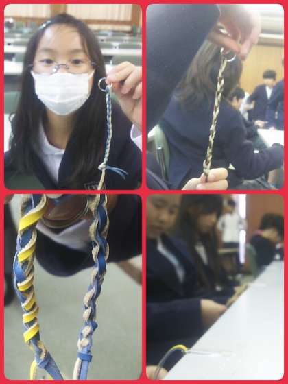 今月の子連協は、地域の方にゲストティーチャーで来ていただき、革編みをしました。2本の革ひもを絡ませながら、小物作りをしました。最初は難しそうにしていましたが、コツをつかんでどんどん編んでいきました。大切にしてください。