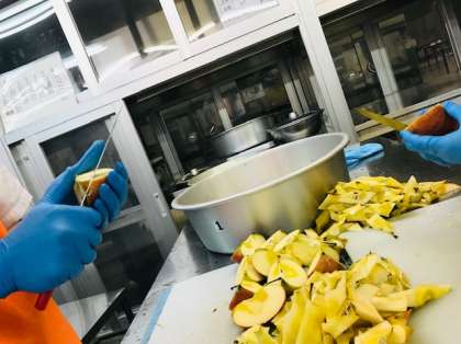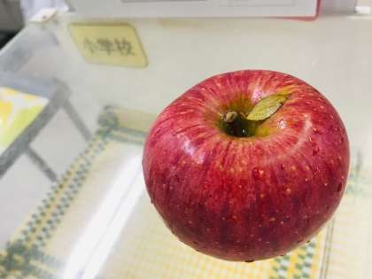 葉つきのりんごを見た子どもたちからは「かわいい」「おいしそう」「いいにおいがする」といった声があがっていました。