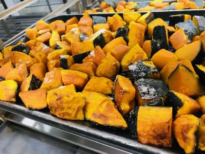 (上)焼き物機から出てきたかぼちゃです。ホクホクしています。