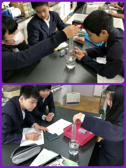 7年生の理科の実験で、浮力の大きさを調べました。大きく重たい船が、なぜ海に浮くことができるのか、予想し、水の中の物体にはたらく力を調べることができました。