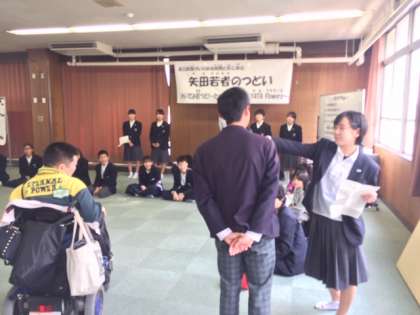 1/11(土)障がいのある仲間と共に歩む「矢田若者の集い」(略して「若つど」が、やたなか小中一貫校で開催されました。今年で32回目になる行事です。矢田7校をはじめ、地域の団体や卒業生などが集まって交流を深めました。先生が企画した遊びや生徒会のゲームなどを通して、お互いを身近に感じることのできる1日になりました。