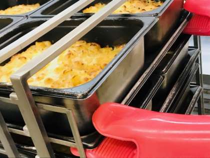 今日のデザートは山形県産の白桃(カット缶)を使った手作りのクラフティでした。