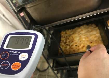 (中)中心温度を確認します。安心安全。大切な工程です。