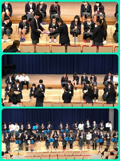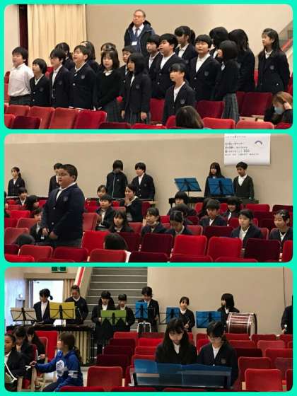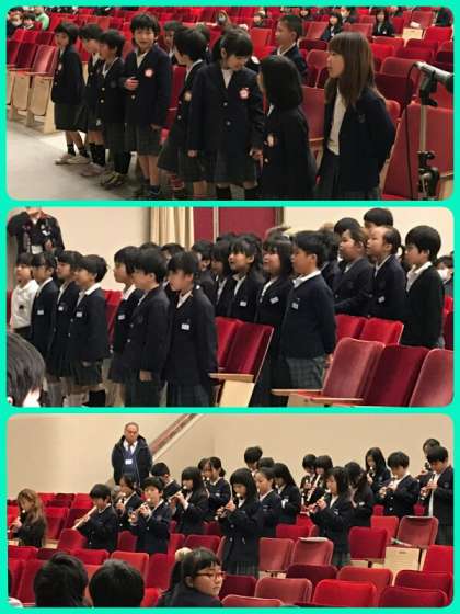 1〜5年生から、合唱や合奏、お祝いの言葉を6年生に届けました。