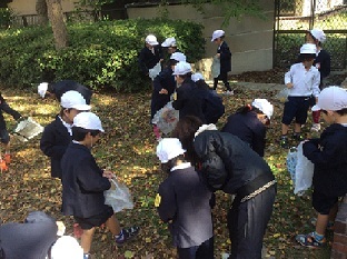 1年生は、近くの公園へ『秋みつけ」に行ってきました。公園には、「どんぐり」や「紅葉した落ち葉」がいっぱい!!気に入った形や色の物をさがしました。