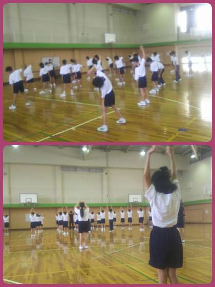 7年生は、体育でラジオ体操をしました。細かな動きや、ひざの曲げ伸ばしなど、あらためて学習しています。確実に覚えて、今後の活動にも活かしていきましょう。
