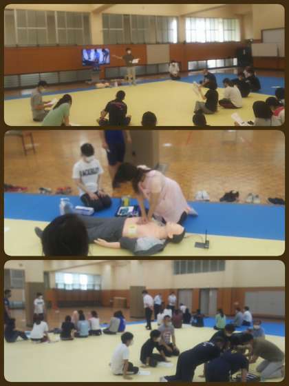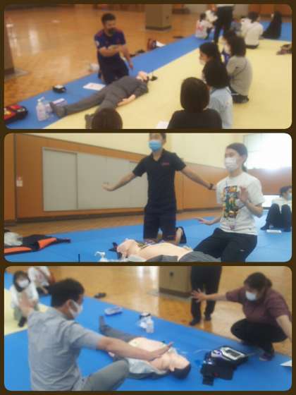 教職員の救急救命講習会を行いました。心臓マッサージやAEDの使い方をあらためて確認しました。万が一のことがあっても、迅速な対応ができるよう教職員全員が意識を高めることができました。ご家庭でも、緊急時の対応を確認していただけたらと思います。