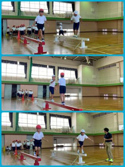 3年生は体育で、平均台を使ったり、全力で駆け抜けたりしました。楽しそうにいきいきと活動していました。さわやかな汗をたっぷりかいたあとは、しっかり水分補給もしました。今後も、様々な運動で体力をつけていきましょう。