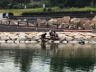 磯観察、かにや、かい、ヤドカリなどの生物を見つけて楽しんでいます。