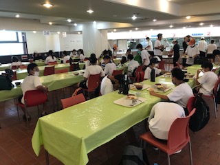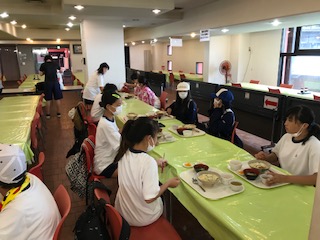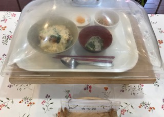 最後の昼食です。カツ丼、にゅうめん、煮もの、たくあんでした。美味しくいただいています。
