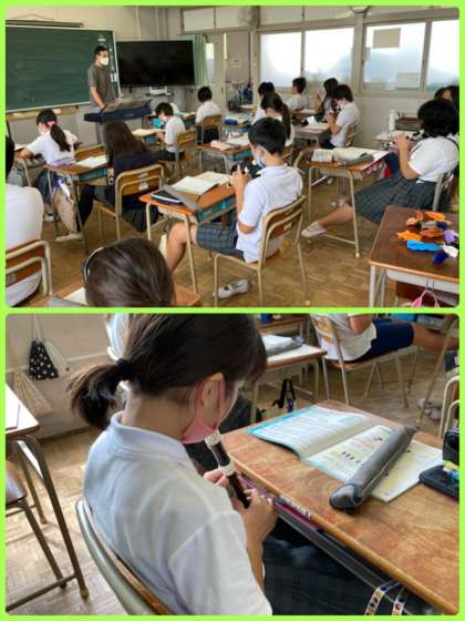 5年生は、リコーダーで「小さな約束」と「リボンのおどり」を演奏しました。テンポ良く、タンギングも意識して吹いています。多くの階名を覚えてきました。今後も色んな曲を演奏できるといいですね。