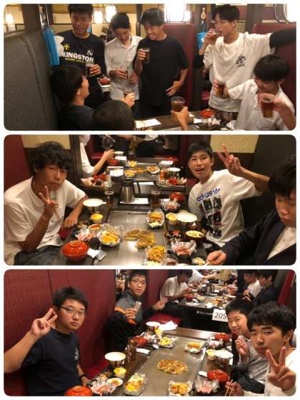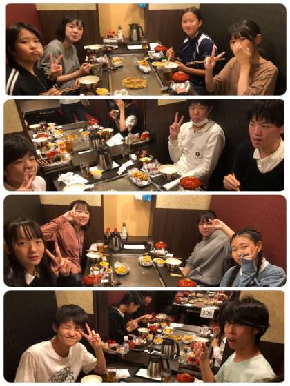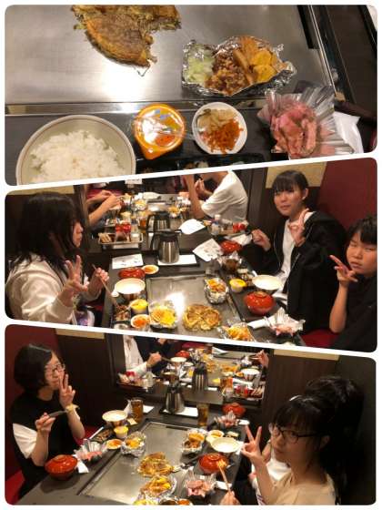 楽しい夕食タイムが始まりました。広島焼定食、いただきま〜す!