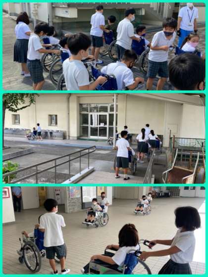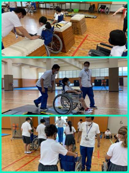その後の介助体験では、乗っている人の気持ちを考えながら、段差やスロープでは、より慎重に友達を押すことができました。
