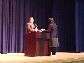 まずは、やたなか小中一貫校講堂において、「始業式」を行いました。始業式の最初には、校長先生より表彰状の伝達がありました。創作部の活動で作成した絵を「大阪市総合文化祭」の展示の部に出展したのですが、その中から選ばれて、「全国総合文化祭」でも展示された作品がありました。今回、その表彰が届きましたので、全校の児童生徒に紹介するとともに、表彰状を伝達しました。2学期の終業式でも、たくさんの表彰状の伝達をしました。やたなか小中一貫校の児童生徒の多方面での活躍に、とてもうれしく思っています。