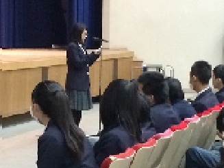 始業式の中で、今回は2年生の代表が「2学期がんばったこと」、そして、生徒会代表が「3学期に向けて」話してくれました。2年生代表の発表は、しっかりしとしていて、とても聞き取りやすい発表でした。生徒会代表の話では、「3学期は、1年間のしめくくり」という大切な内容を伝えてくれました。