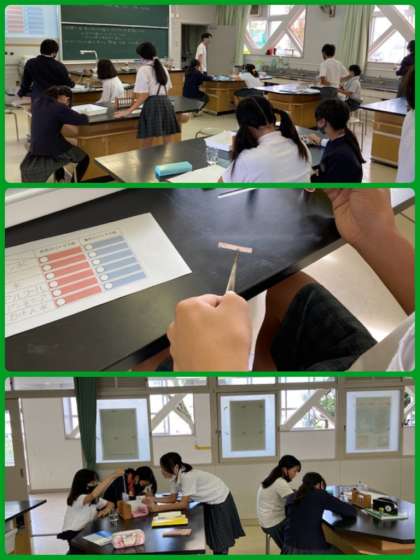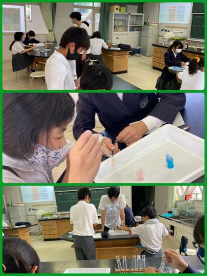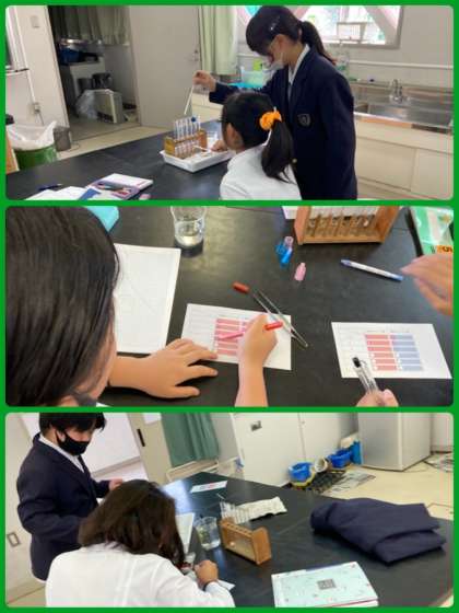 6年生は理科で、リトマス紙を使って水よう液の仲間分けをしました。ガラス棒で水よう液をリトマス紙につけて、色の変化を観察しました。予想と比較しながら、実験を進めていきました。様々な方法で、水よう液の仲間分けができるようになっています。