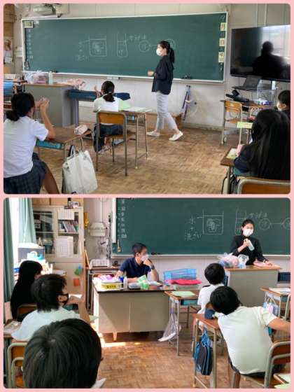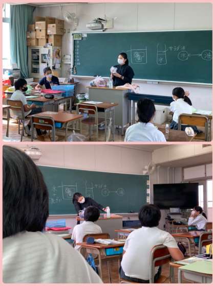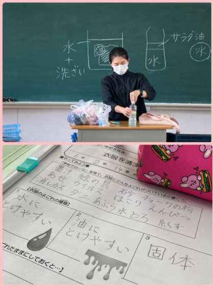 6年生の家庭科では、衣服を清潔に整えるためにどうすればよいかを考えました。学校での一日で、考えられるよごれをふり返り、よごれたままにしておく危険性も学びました。