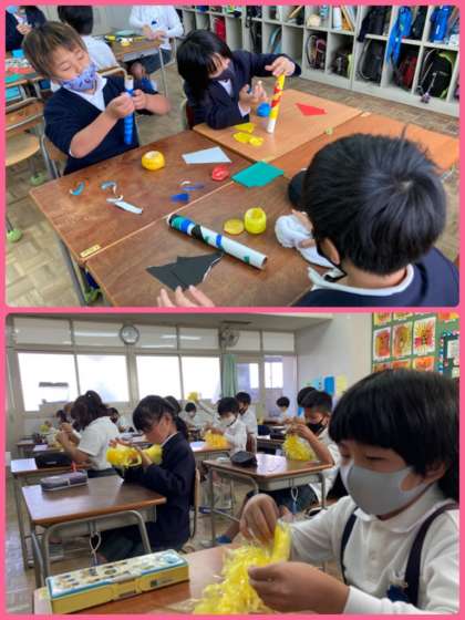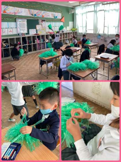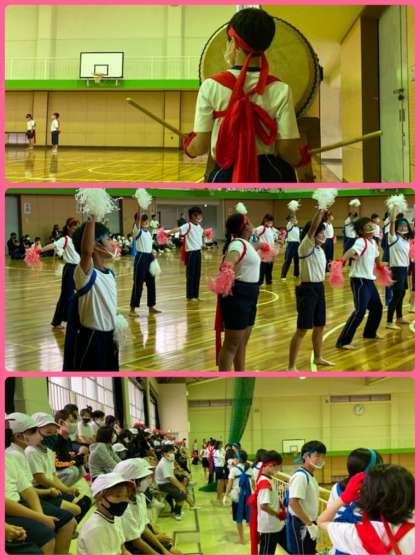 体育祭の前日には、各クラスが団体演技で使用するものの最終確認をしていました。応援団も体育館の前日練習で、全校児童生徒をまとめてくれました。