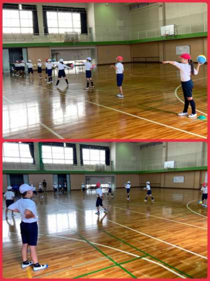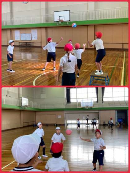 3年生の体育では、ポートボールをしています。みんなが意欲的にのぞんでおり、声をかけあいながらパスを回して、チームとしての団結力も高まっています。試合を重ねていく中で、技術もどんどん向上していくといいですね。