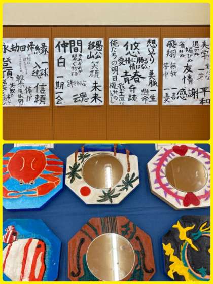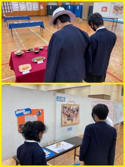 本日の土曜授業に合わせて、中学部の舞台発表と展示発表が開催されます。昨日、小学部も展示見学をしました。創作部、美術科、英語科、国語科などの作品を見て、小学生からは「すごい、上手!」「どんなふうに作ったんだろう?」といった声があがっていました。本日のお昼まで、体育館1階で展示しておりますので、保護者の皆様、ぜひご覧ください。