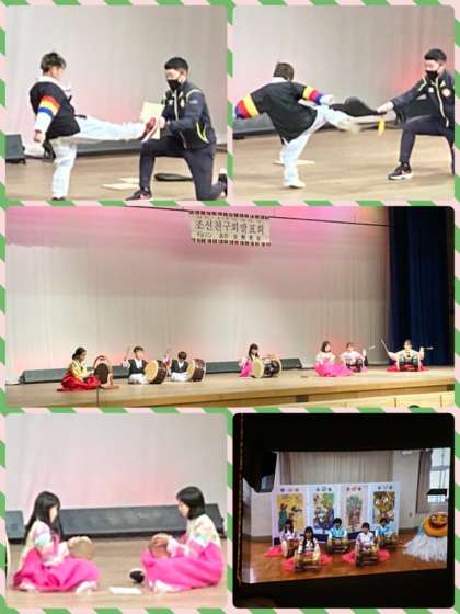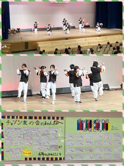 本日、チョソン友の会の発表会がありました。リズムが合ったカルチュムノリ、力強いテコンドー、迫力満点のサムルノリなど、それぞれが堂々と演技できました。各学年からも、応援メッセージを掲示して、エールを送りました。