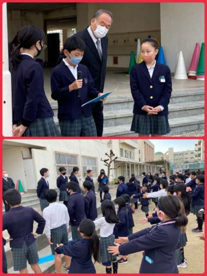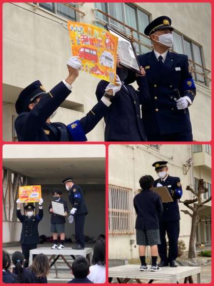 今週の小学校朝会では、東住吉消防署の署長にお越しいただき、防火・防災図画の表彰状を直接渡してもらいました。消防に関するお話もしていただき、子どもたちは興味深そうに聞いていました。冬休みも、お家でできる様々なことに挑戦してみてください。