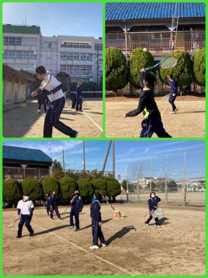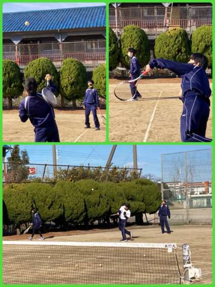 寒空の下でしたが、ソフトテニス部は新年の活動を始めました。小学生も中学生も、声をかけ合いながら楽しく活動していました。今年も、各自の目標に向かって練習を続けていきましょう。