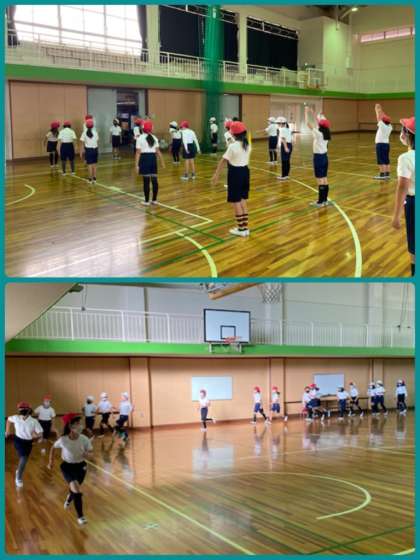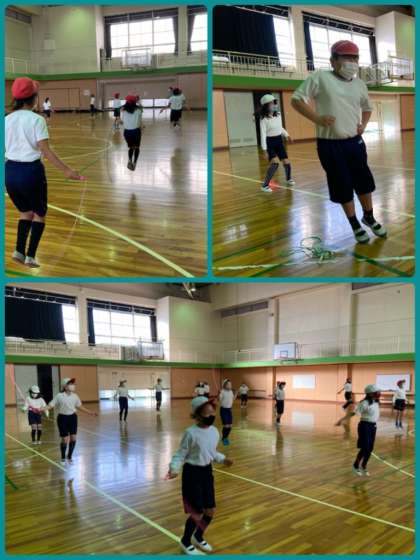 4年生の体育は、体育係を中心に準備体操、かけ足、なわとびなど、きびきびとした流れで活動しています。今後も、様々な種目に取り組んで体力づくりをしていきたいと思っています。