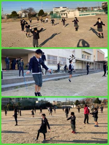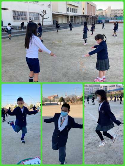 小学校集会で、なわとびをしました。運動委員が中心となって、司会をしたり見本を見せたりしてくれました。たてわり班で跳び方のコツを教えあう姿も見られ、ほのぼのした様子でした。来週は、少しレベルアップした跳び方にも挑戦します。うまく跳べるといいですね。