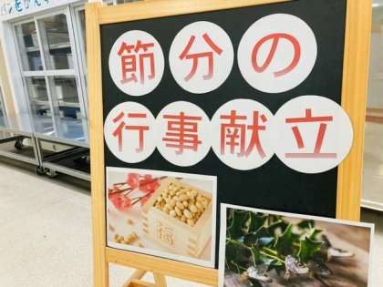節分には「年の数だけいり大豆を食べる。」「豆まきをする。」「恵方巻を食べる。」などの習慣をたのしみにしている児童が多いようでした。また、先日の小学校朝会でお話があった「節分が2月2日になったのは、124年ぶりのことになる。」というニュースに関心をもつ児童もいました。
