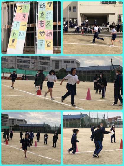 7・8年生のマラソン大会を行いました。例年、長居公園の長距離走路で走っていますが、今年度は感染症予防対策のため、本校の運動場の周回コースを走りました。男子は14周(5km)、女子は8周(3km)走りました。