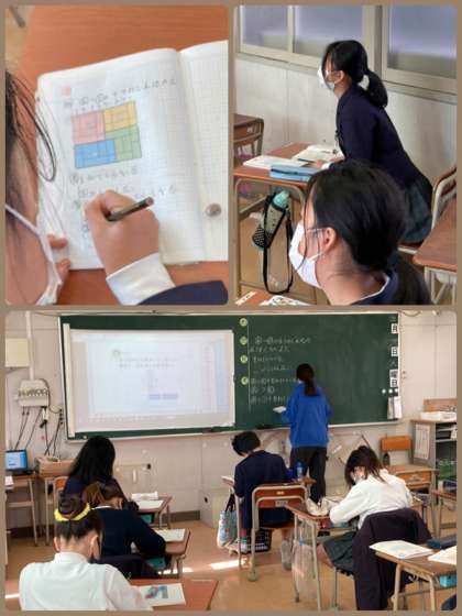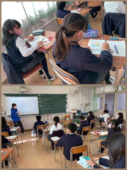 4年生は算数で、面積の学習をしました。じん地をくらべる学習では、自分の考えを発表しながら、どの方法がよいかみんなで考えていきました。