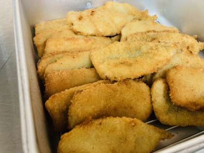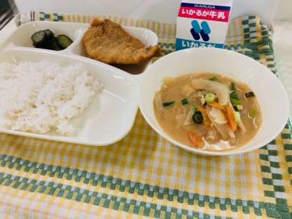 今日の献立は「いわしのフライ、みそ汁、きゅうりの赤じそあえ、ごはん、牛乳」でした。いわしには、体をつくるたんぱく質のほかに、脂質も含まれています。いわしの脂質には脳の働きをよくするDHA(ドコサヘキサエン酸)や血液の流れをよくするEPA(エイコサペンタエン酸)が豊富に含まれています。今日はいわしの開きをフライにしてありました。骨ごと食べることができ、カルシウムもたくさんとることができました。