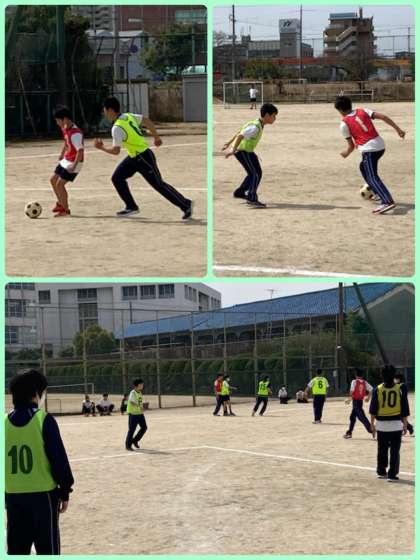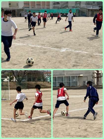 7年生の男子は、体育でサッカーをしました。試合では、チームで協力してシュートまでつなげていました。これからも練習メニューを工夫しながら、個人としてもチームとしてもレベルアップしていきましょう。