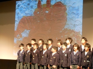 教材「島ひきおに」を学習して、その群読を児童集会で発表しました。