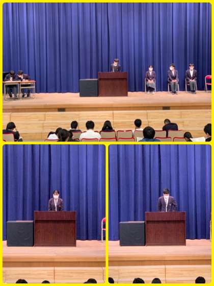 中学部の2021年度の前期生徒会選挙が行われました。会長、副会長、書記と、それぞれの候補が学校を引っ張っていく意識をもって立会演説会にのぞみました。選挙管理委員が配った投票用紙に記入し、それぞれが一票を投じました。
