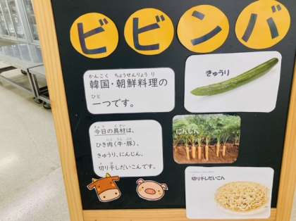 【クイズ】今日のビビンバの具材には、ひき肉(牛・豚)、きゅうり、にんじん。とあと一つ、冬が旬の野菜を干すなどして加工したある乾物が使われていました。