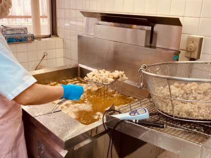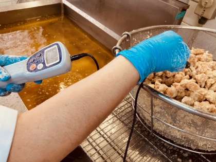 (中)中心温度をはかって、安全を確かめます。