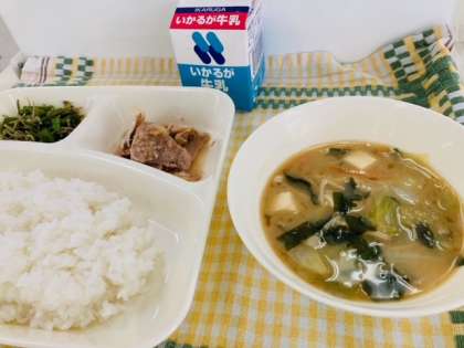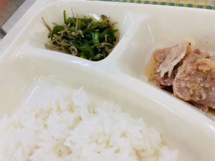 4/26の献立は「豚肉のしょうが焼き、みそ汁、じゃこピーマン、ごはん、牛乳」でした。「じゃこが好き」「じゃこが…ちょっと…」「ピーマンが野菜の中で一番すき」「ピーマンが苦手」と、様々な感想がありました。でも、共通しているのは「がんばって食べた。」「じゃこピーマンと豚のしょうが焼きとみそ汁を順番に食べたらめちゃくちゃおいしかった。」など、しっかりと自分のものにしているところでした。日々の成長です。