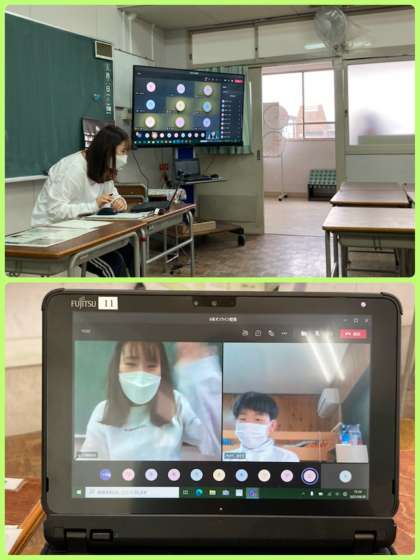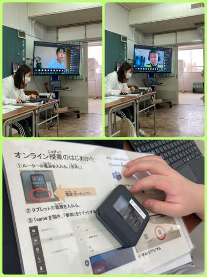 6年生は、家庭と学校の双方向通信接続確認を行いました。クラス全員が、帰宅後の定刻通りに学校と接続することができ、顔や声の確認ができて先生たちも安心しました。今後、利用する機会が増える可能性もあります。接続方法をしっかり覚えておきましょう。
