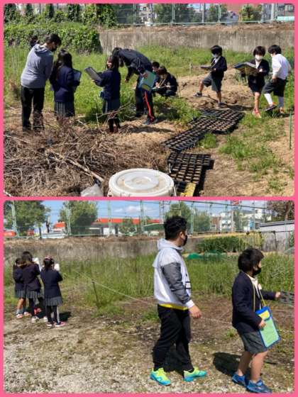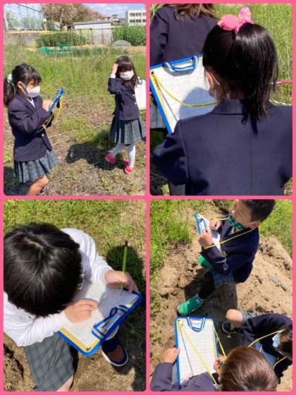 3年生は理科で、春の植物の観察をしました。校舎の地図を持ちながら、春を感じられる場所をめぐりました。発見カードに、気付いたことをたくさん書きこみました。季節ごとに、植物の変化の様子をしっかり観察していきたいですね。