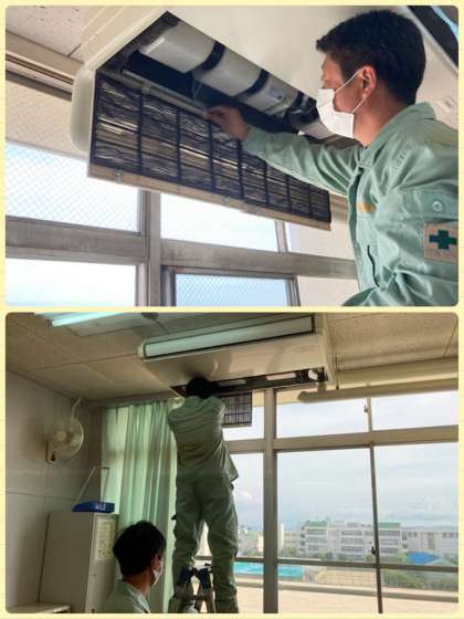 暑い日が増えてきており、エアコンを使う時期も近づいております。エアコンにもマスクをして、各教室で対策していきたいと思います。