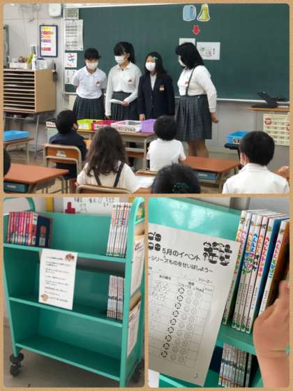 図書掲示委員会の取り組みで、シリーズ本にチャレンジして感想を書いてもらう読書推進活動を進めています。おすすめの本、おもしろかった本があれば、ぜひ友だちにも紹介してあげましょう。
